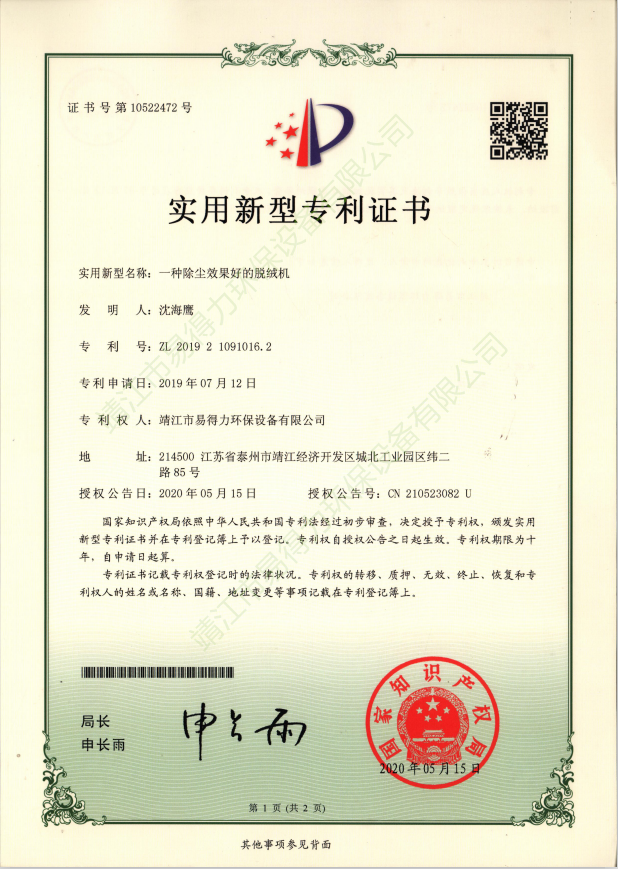 專利證書(shū)本公司坐落于開(kāi)放開(kāi)發(fā)超前城市江蘇靖江,我們精良優(yōu)秀設(shè)計(jì)團(tuán)隊(duì)始終遵循著創(chuàng)新超越的理念,贏得了中外合資企業(yè)的信賴。易得力環(huán)保設(shè)備有限公司與上海環(huán)科院等科研單位保持合作關(guān)系,不斷加大自身的科研力量,集中了一批國(guó)內(nèi)環(huán)境科技研究和應(yīng)用方面的高素質(zhì)人才,取得多項(xiàng)實(shí)用新型專利證書(shū)。…… 查看更多 >>